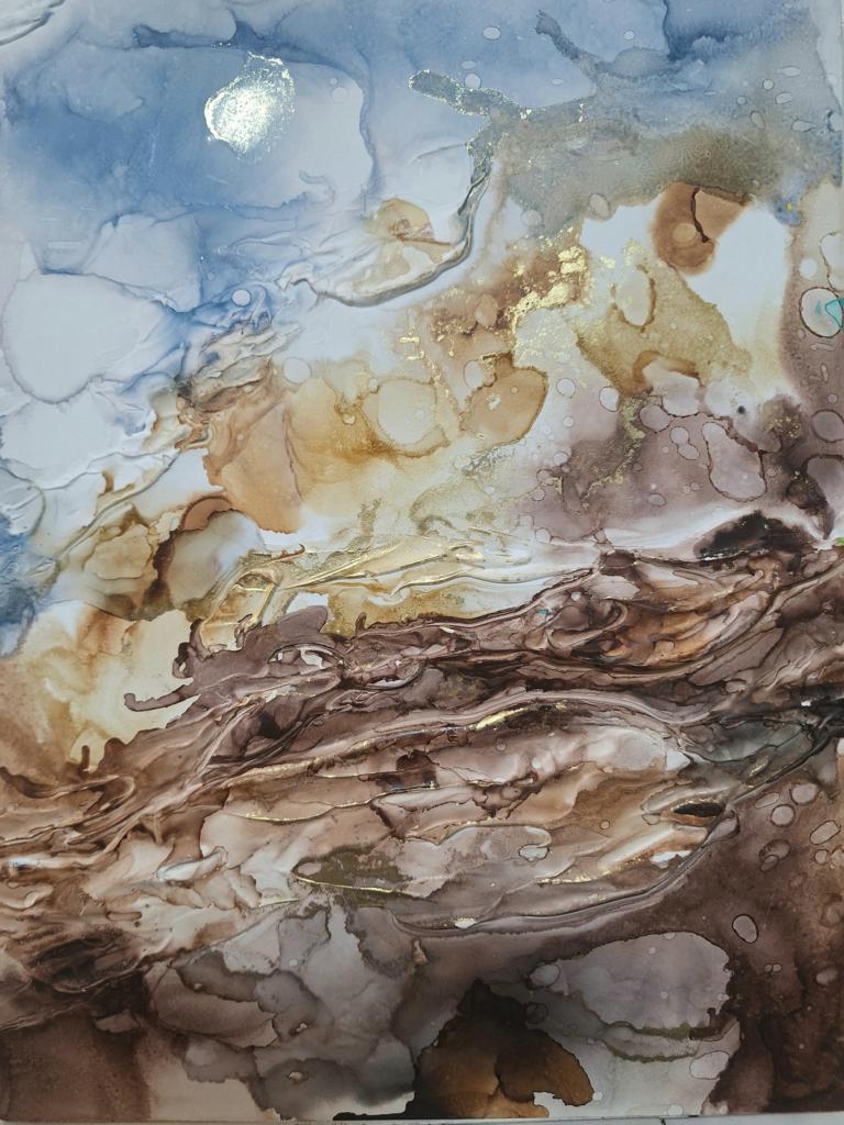 24.10. + 25.10.2025 Struktur mit Alcohol-Ink. 2-Tagesworkshop, Tag 1 von 17:00 – 19:00 Uhr, Tag 2 von 10:30 – 15:00 Uhr. Teilnahmegebühr 150,00 € zzgl. Malgrund